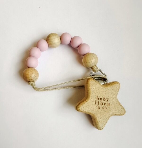 Descubri nuestros portachupetes con cuentas de madera natural y silicona antibacteriana de grado alimenticio. Libres de BPA, PVC y ftalatos, ¡son 100% no tóxicos!