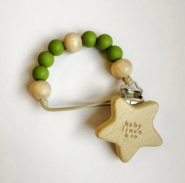 Descubri nuestros portachupetes con cuentas de madera natural y silicona antibacteriana de grado alimenticio. Libres de BPA, PVC y ftalatos, ¡son 100% no tóxicos!