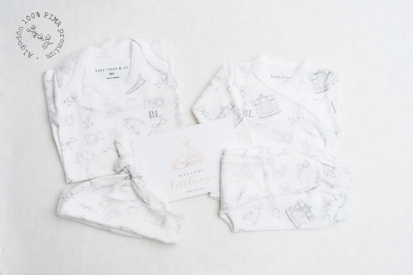Este exclusivo ajuar para bebé recién nacido está confeccionado en suave algodón pima, pensado para ofrecer el máximo confort, suavidad y abrigo desde el primer día de vida. Ideal para tener listo el bolso de la clínica o para regalar en un baby shower.