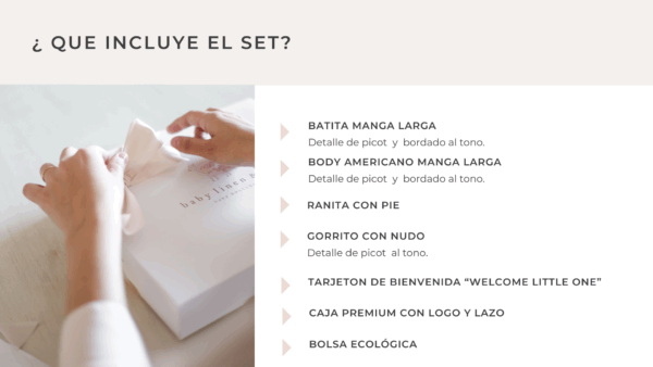 Este ajuar es mucho más que ropa: es un gesto de amor, ideal para sorprender a quienes más querés. Viene listo para entregar, con packaging delicado y personalizado.