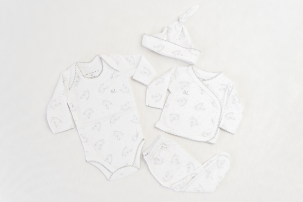 Este exclusivo ajuar para bebé recién nacido está confeccionado en suave algodón pima, pensado para ofrecer el máximo confort, suavidad y abrigo desde el primer día de vida. Ideal para tener listo el bolso de la clínica o para regalar en un baby shower.