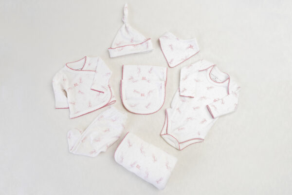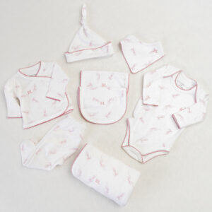 Este exclusivo ajuar para bebé recién nacido está confeccionado en suave algodón pima, pensado para ofrecer el máximo confort, suavidad y abrigo desde el primer día de vida. Ideal para tener listo el bolso de la clínica o para regalar en un baby shower.