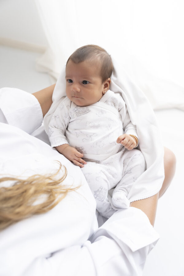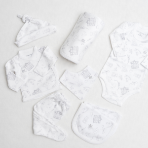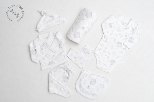 Este exclusivo ajuar para bebé recién nacido está confeccionado en suave algodón pima, pensado para ofrecer el máximo confort, suavidad y abrigo desde el primer día de vida. Ideal para tener listo el bolso de la clínica o para regalar en un baby shower.